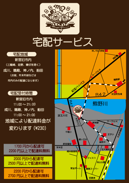 クレープ・バーガー・パフェなどスウィーツから軽食まで60種類以上のメニュー新宮市【マジックピエロ】配達もしております。